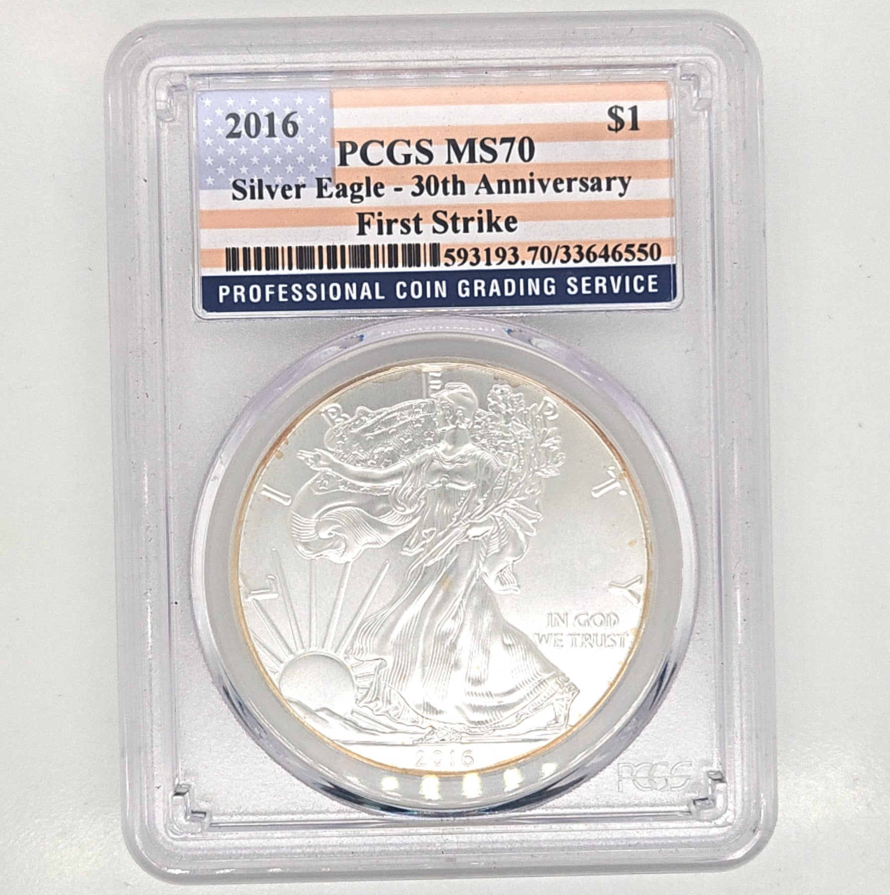 PCGS MS70 2016 Silver Eagle 30th Anniversary First Strike