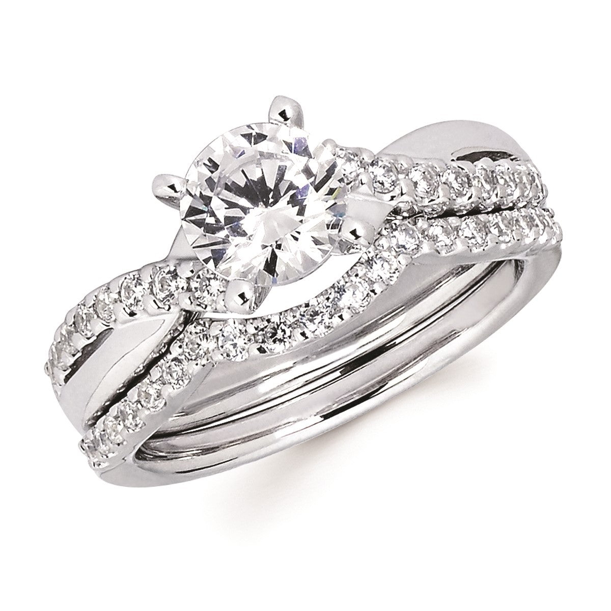 This exquisite 14 karat white gold semi mount ring features a beautifully intricate diamond criss cross shank, weighing .20 carats. Elevate your style with the timeless elegance and sparkle of this stunning ring. Perfect for any special occasion or just because. Center stone and matching band sold separately.