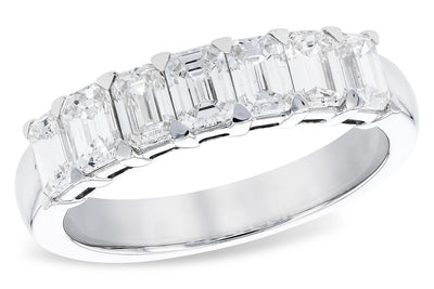 A single shared prong helps hold the sparkling diamonds place in this luxurious band style. This beautiful diamond band is perfect for the modern bride who prefer a classic and neat look.